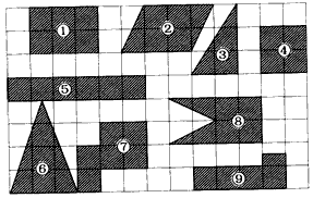 | 下面各个图形被撕去了一部分,求原来长方形或正方形的面积。(每个小方格为1cm2) |