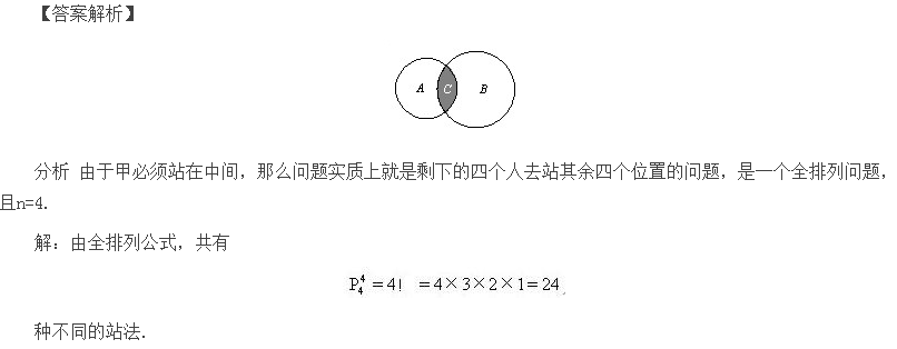 5个人并排站成一排,其中甲必须站在中间有多少种不同的站法?