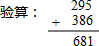 列竖式计算,带☆的要验算.46÷8=84÷9=512-364=☆386+295=☆