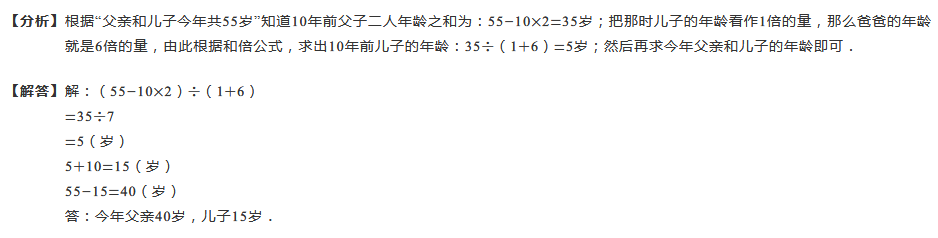 父亲和儿子今年共55岁,10年前,父亲的年龄是儿子的6倍,今年父亲和儿子各是多少岁?