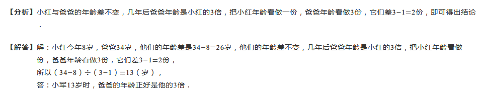 小军今年8岁,他爸爸今年34岁,小军多少岁时,爸爸的年龄正好是他的3倍?