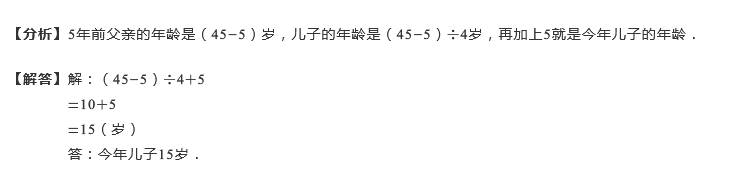 父亲今年45岁,5年前父亲的年龄是儿子的4倍,今年儿子多少岁?