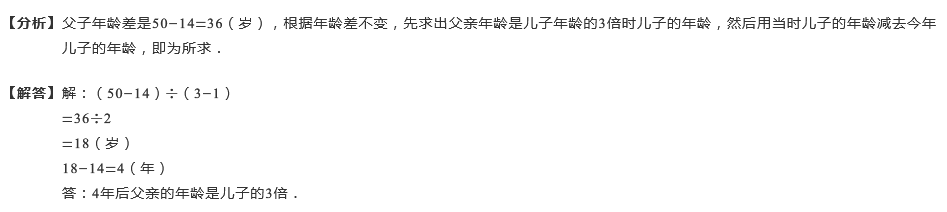 父亲今年50岁,儿子今年14岁,几年后父亲的年龄是儿子的3倍?