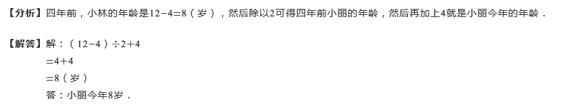 4年前,小林年龄是小丽的2倍,小林今年12岁,小丽今年多少岁?