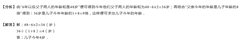 父亲今年的年龄是儿子的8倍,6年后父子两人的年龄和是48岁,儿子今年多少岁?