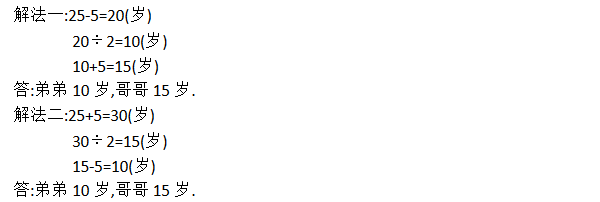 兄弟二人的年龄和是25岁,四年后,哥哥比弟弟大5岁,今年哥哥和弟弟各是多少岁?