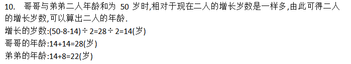 弟弟今年8岁,哥哥14岁,当二人的年龄和是50岁时,哥哥和弟弟各是多少岁?
