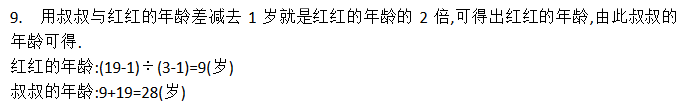 叔叔比红红大19岁,叔叔的年龄比红红的3倍多1岁,叔叔和红红各是多少岁?
