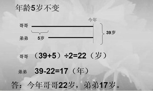 哥哥和弟弟的年龄和是39岁,5年后哥哥比弟弟大5岁,今年哥哥和弟弟各是多少岁?