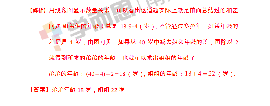 姐姐今年13岁,弟弟9岁,当姐弟年龄和是40岁时,两人各是多少岁?