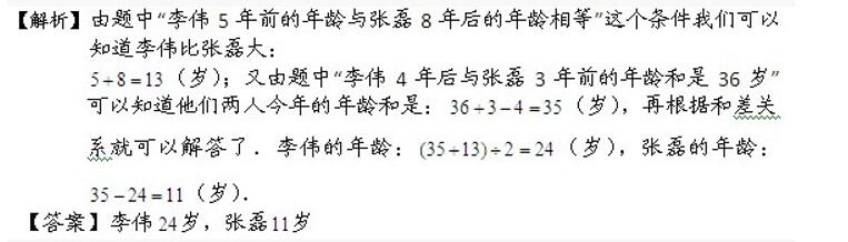 李伟5年前的年龄与张磊8年后的年龄相等,李伟4年后与张磊3年前的年龄和是36岁,李伟和张磊两人今年各多少岁?